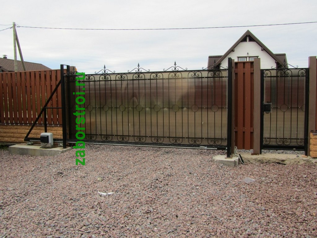 Откатные ворота из поликарбоната пример 1