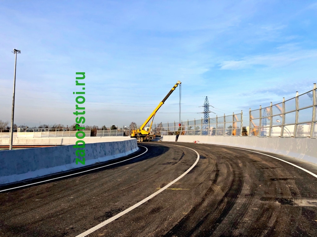 Прозрачный шумозащитный забор Развязка М1 27км